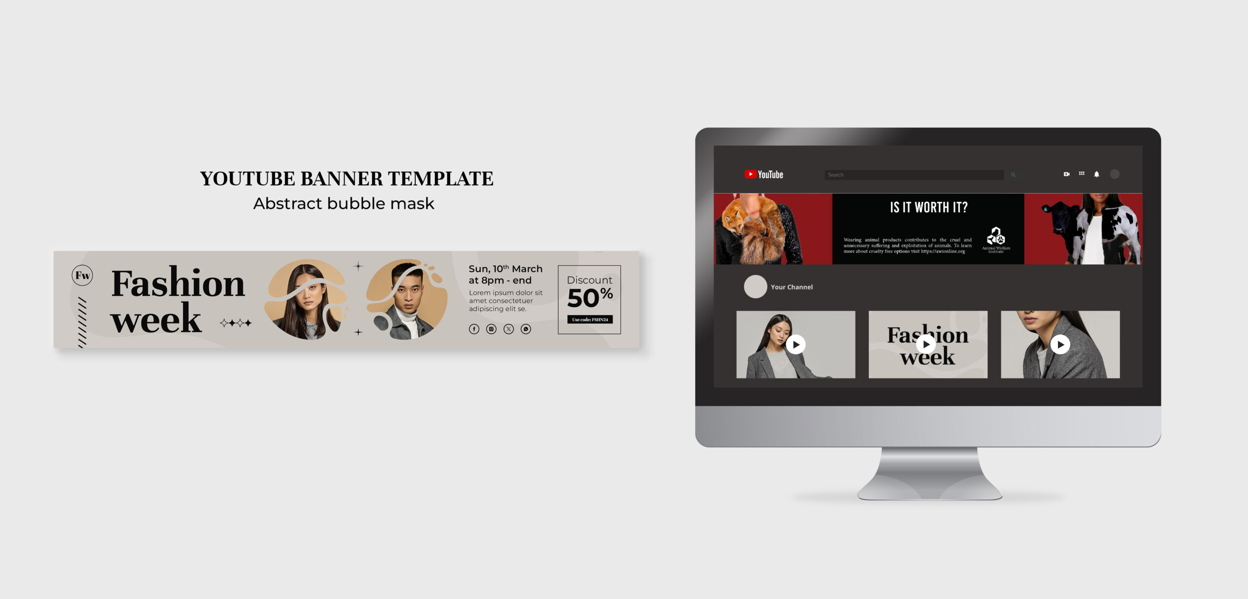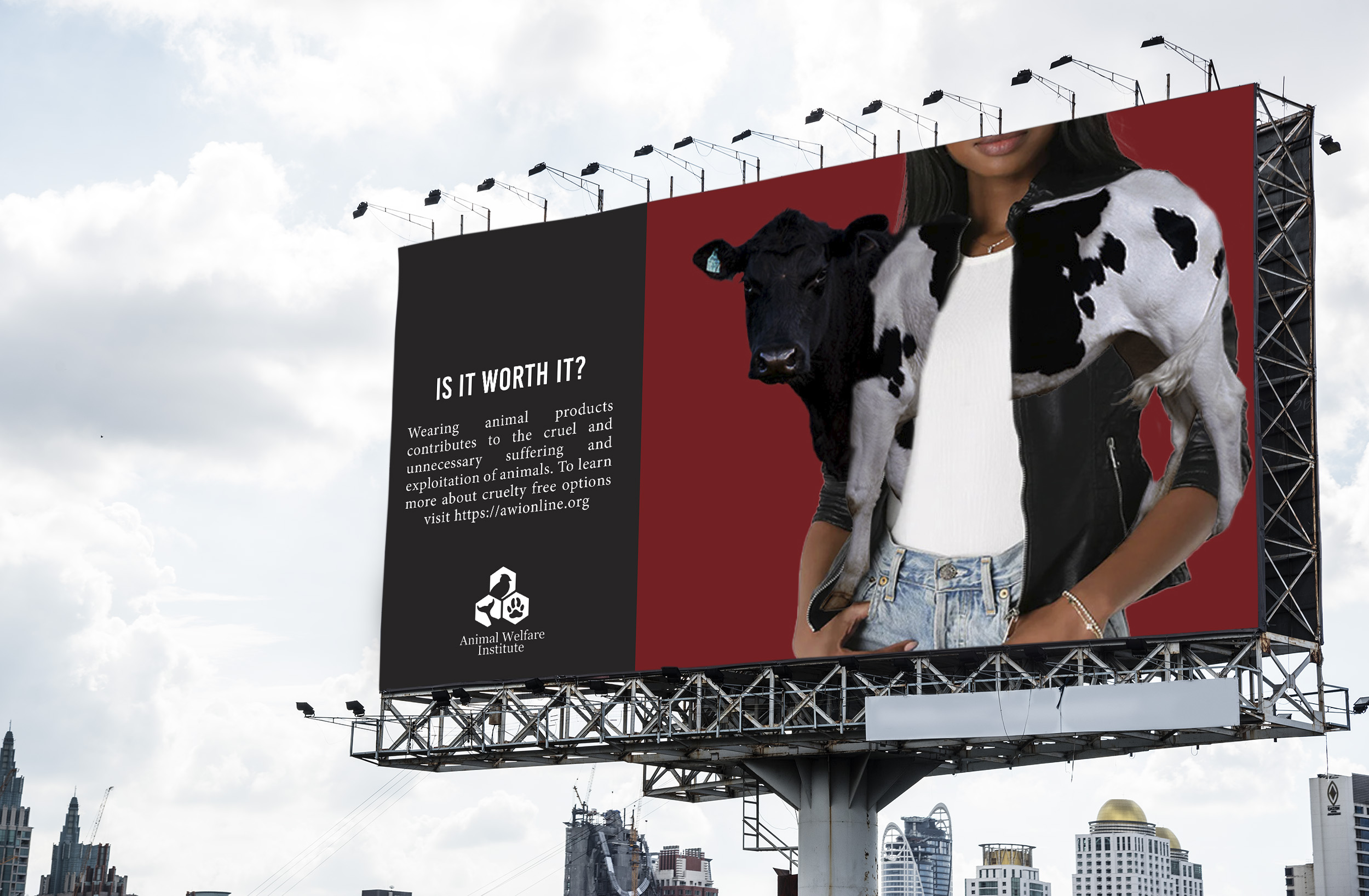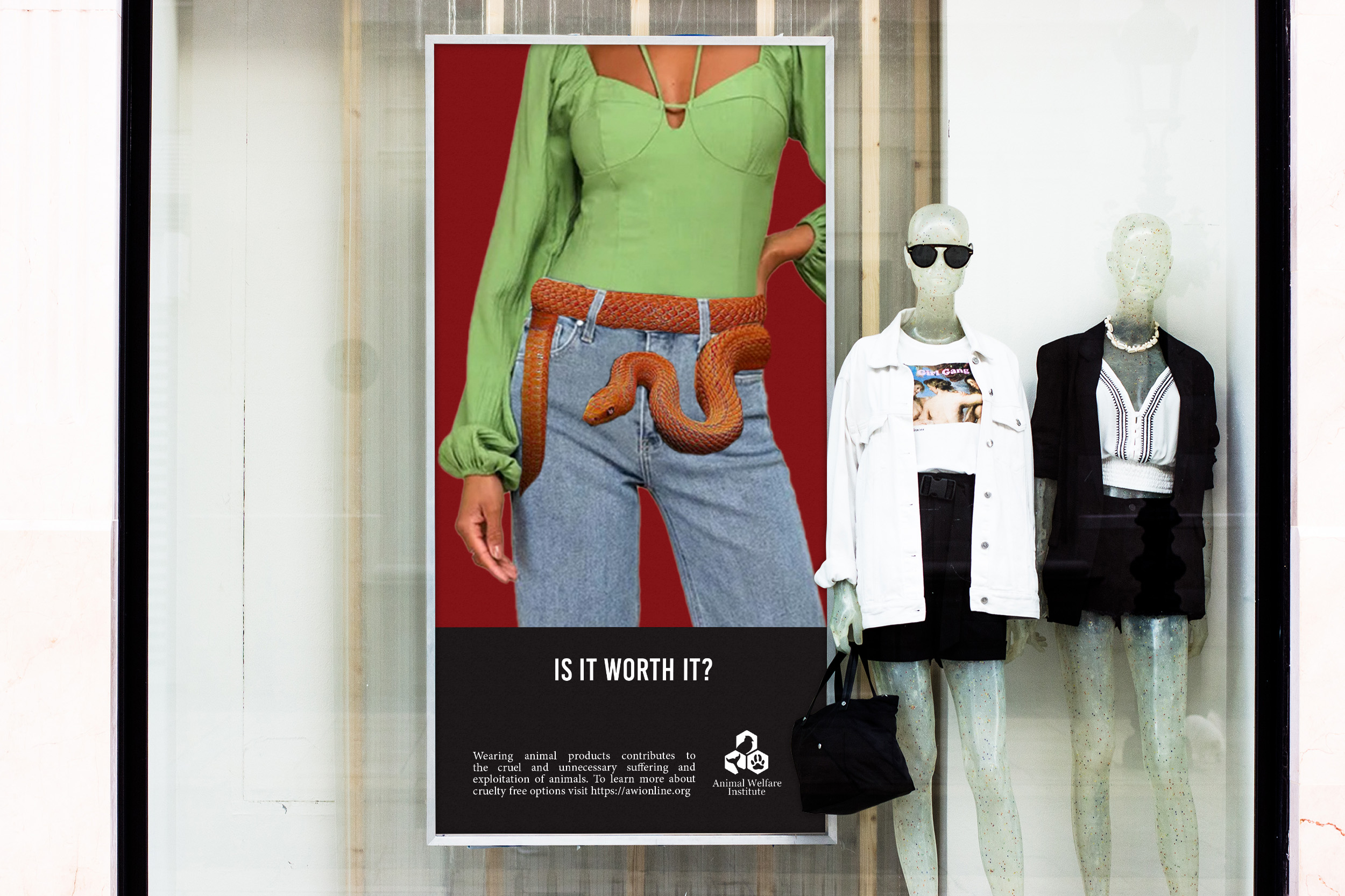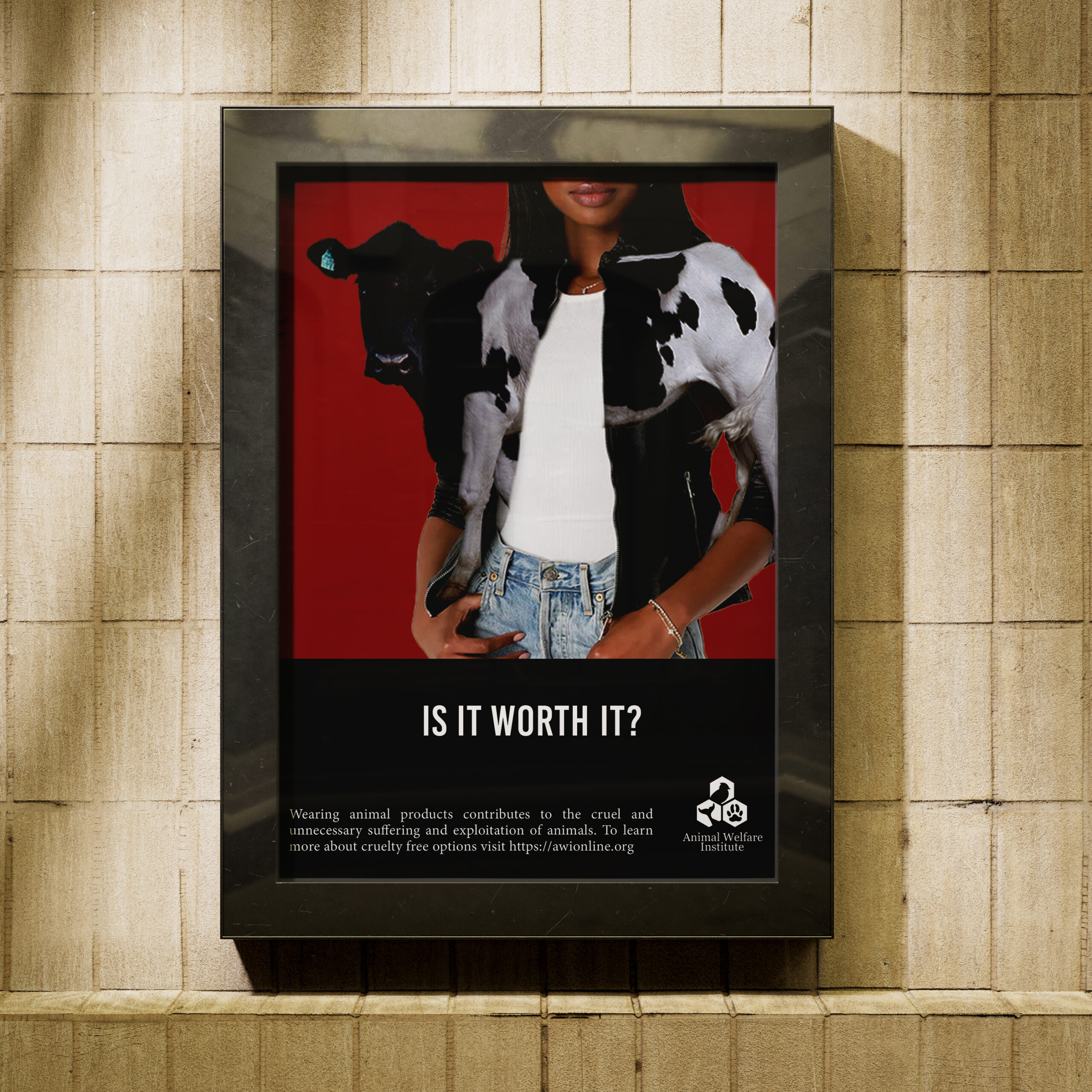 Supplementing the print ads, city billboards, and storefront posters target shoppers, urging them to reconsider their purchasing decisions. Meanwhile, a Pinterest Ad provides subtle exposure to cruelty-free fashion on a platform known for fashion inspiration, while a YouTube Banner Ad directs users to the Animal Welfare Institute Website, offering further information on ethical fashion choices. Together, these media channels aim to educate and inspire consumers to make compassionate choices in their fashion purchases.
